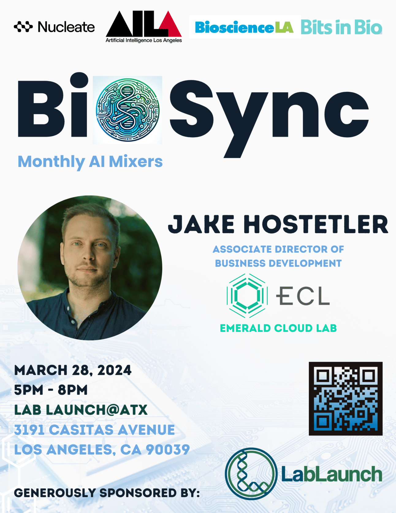 Venture into the cutting-edge crossroads of AI and Biotech at our BioSync AI Mixer! ​​Headlining the event is a Fireside Chat led by Jake Hostetler, Associate Director of Business Development at Emerald Cloud Lab.