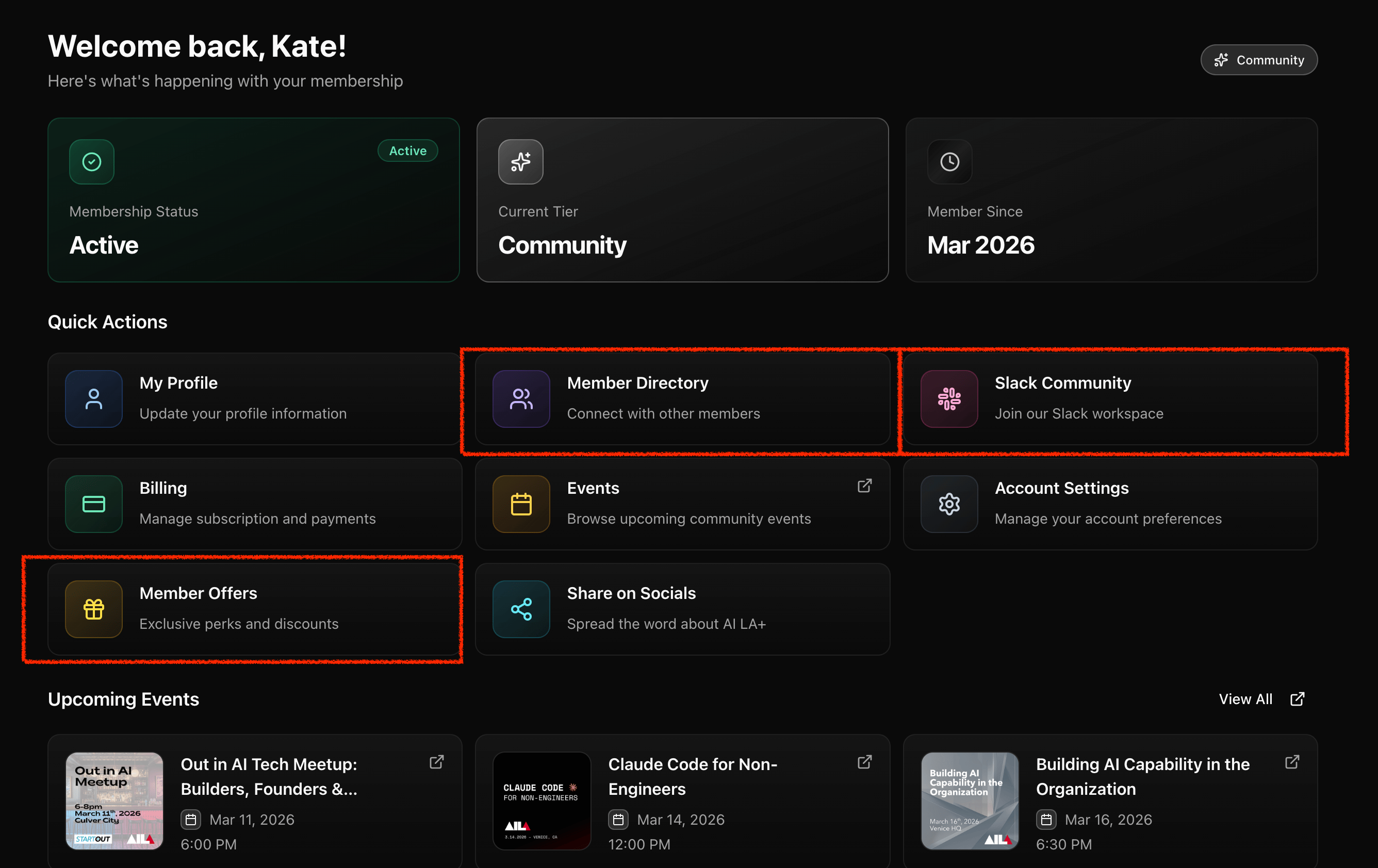 We just launched our new membership portal so leveraging your AI LA+ community has never been easier. One spot to source partner Offers, find collaborators in our Member Directory or cultivate partnership in our Slack Community.