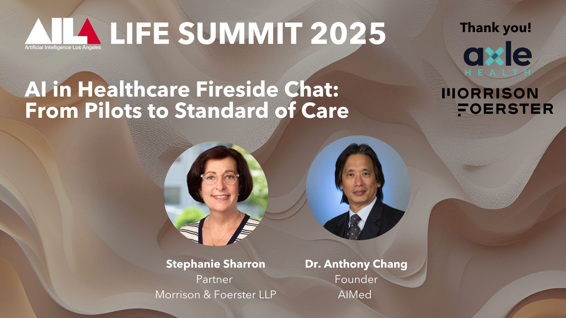 Thanks to Axle Health and Morrison Foerster for supporting this event.